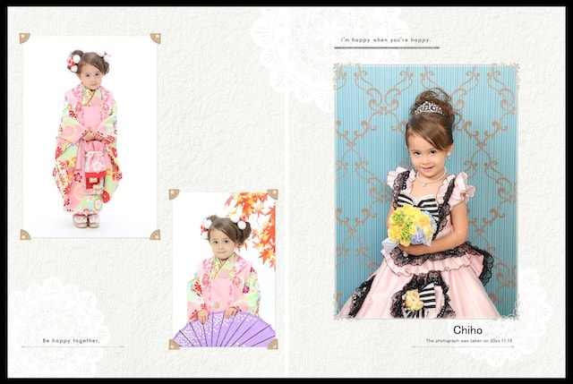 お子様の晴れ着姿を、可愛くおしゃれにに残しましょう。